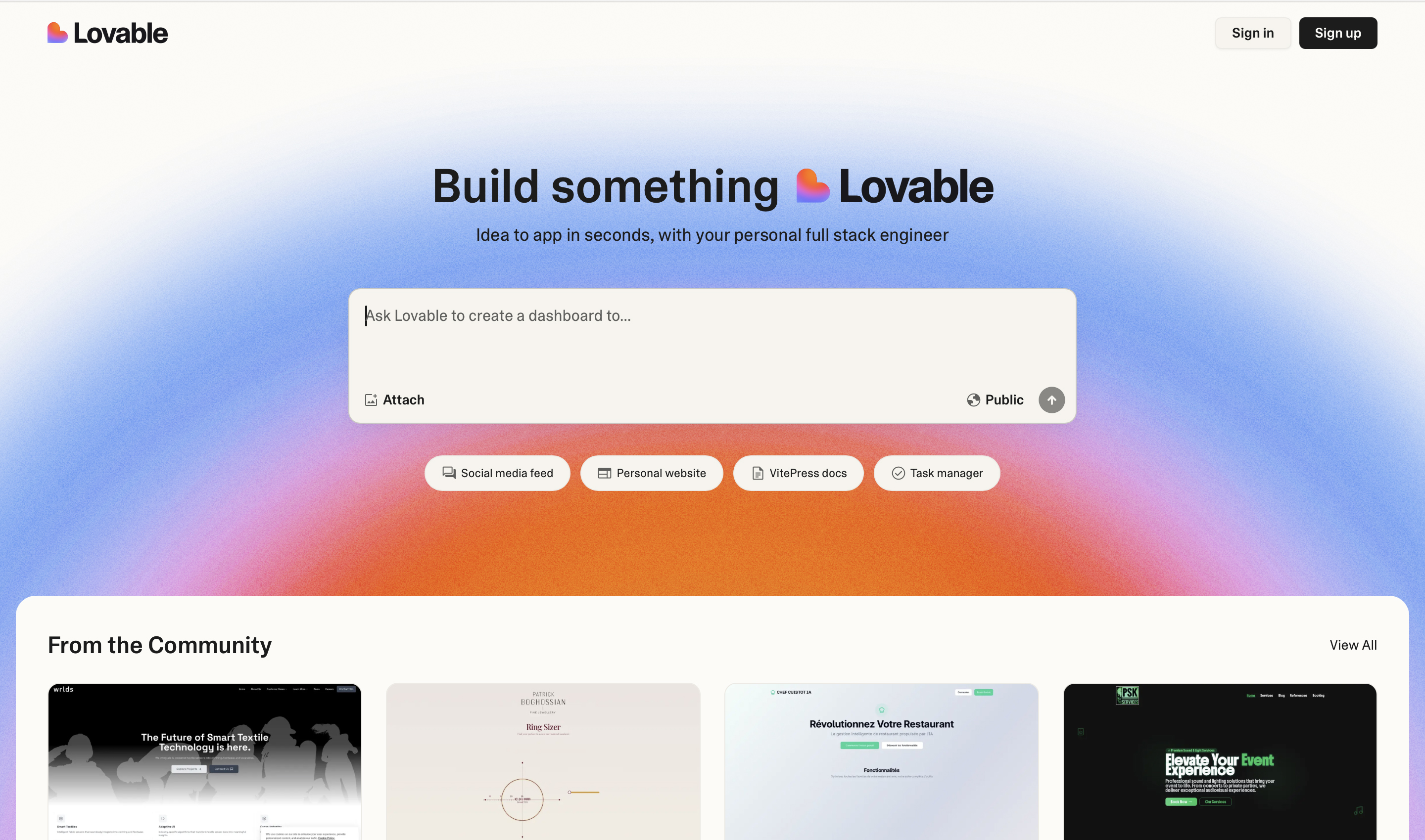 This workshop is hands-on; you will build your own product in Lovable (lovable.dev), and you will also explore alternatives such as Scabld.